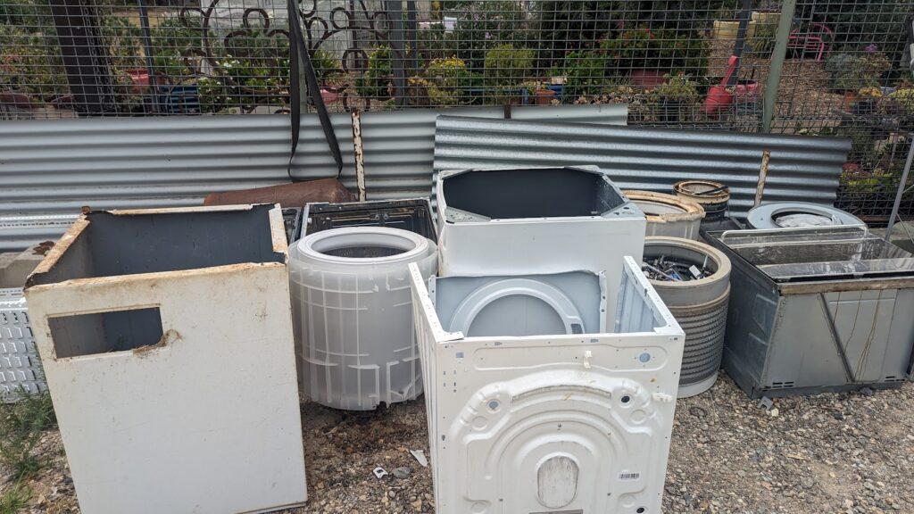 Recycling is at the heart of the Wagga shed. Members collect old appliances—everything from washing machines and microwaves to electric motors—and pull them apart by hand. Copper wiring, worth up to $10.60 per kilo when stripped, is carefully extracted. Aluminium and steel are sorted into bins, and even plastic tubs from old machines are resold as livestock feeders or fire bins.